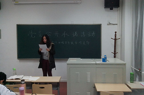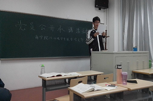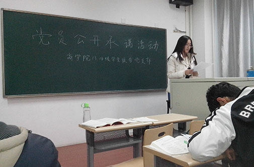 1066vip威尼斯2013及14级联合党支部在11月28日于逸夫楼1012教室举行了“党员公开承诺活动”,活动由党支部副书记齐托托同学主持。在活动中各位参与的党员以及入党积极分子都上台宣读了自己的承诺书,并在承诺书上签名。