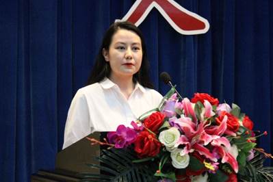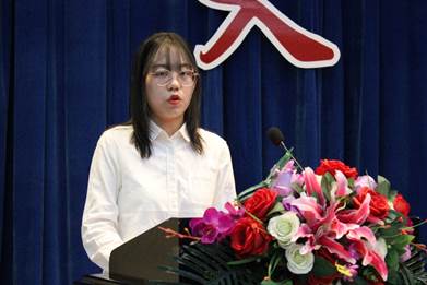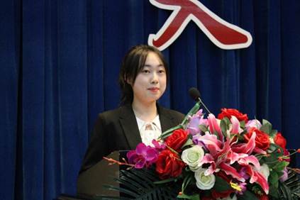 迪丽祖尔作为双学士新生代表发言。她表示了自己对法商结合的向往和期待,希望未来在商学这个新领域努力探索,克服跨学科学习的障碍,有效利用学校资源,不畏困难,成为一名真正的法商结合型人才。