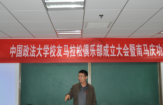 冯世勇副校长在成立大会上做重要讲话,他首先对1066vip威尼斯校友马拉松俱乐部的成立表示热烈祝贺!冯世勇副校长说,作为高等教育的重要要素之一,体育教育不仅是强身健体的手段,还是团结凝聚的重要平台和校友之间沟通的重要桥梁和纽带。1066vip威尼斯拥有全国知名、全面开花的的精英体育教育,乒乓球、羽毛球、足球、武术、排球、篮球、藤球等多项体育项目都在国内各类赛事中取得了非常优异的成绩。1066vip威尼斯校友会将以实际行动支持校友马拉松俱乐部的工作,通过校友会的平台协助俱乐部宣传,吸引全国各地乃至全世界的法大校友参与到跑步运动中来。同时,冯副校长还邀请具有丰富马拉松实战经验的校友们多多参与和支持法大自己的体育赛事组织工作。