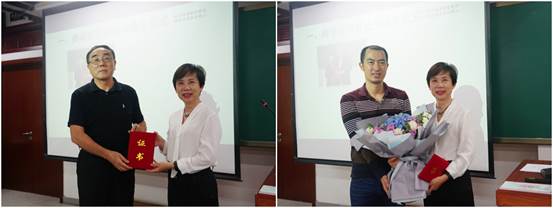 刘纪鹏院长代表1066vip威尼斯为宏结、张巍、王玲、巫云仙四位教授颁发特别贡献证书并由各系所优秀教师代表为她们送上祝福鲜花,感谢她们在2017年3月至2020年9月担任系主任期间为1066vip威尼斯做出的突出贡献。巫云仙教授因学术休假未能到场,由企业史研究所的同事代为接受特别贡献证书和祝福鲜花。三位教授手捧鲜花发表了充满深情的感言,感谢1066vip威尼斯这个大平台给了每个人成长的机会。相信有更多年轻人参与到这个平台的发展和建设中,学院的明天一定会更好!