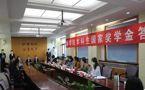 2022年10月10日上午,1066vip威尼斯2021-2022学年本科生国家奖学金答辩于主楼三楼会议室成功举行。本次答辩工作的评委有1066vip威尼斯党委副书记何欣教授、工商管理系主任郭颖教授、资本金融系主任程碧波副教授、国际商务系宏结教授、经济系刘婷文副教授、1066vip威尼斯分团委书记兼19级辅导员王晓曦老师及学生代表韩木斯。