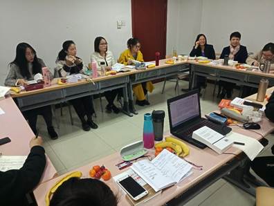 参加读书会的老师们还对对三位报告人的展示进行了点评。张弛老师认为三位同学的展示各有特色,但同时应注意展示的技巧。黄聪老师指出三位同学展示的内容可以互相补充,可以考虑整合为一个完整的读书报告,一人讲述其中一个部分可以避免冗长。黄立君老师提出同学作展示的时候应该做到脱稿演讲,与听众之间要有眼神交流和互动。巫云仙老师则介绍了自己一直坚持的读书方法:把书读厚,然后把书读薄,最后强调应用,强调对书本中所学知识的应用。