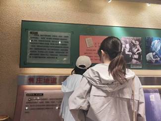 陈佳诺:我们一起参观了被誉为“人民第一堡垒”的顺义焦庄户地道战遗址纪念馆。在我真切地去感受了这一段历史之后,我深深感叹于革命先辈们的智慧,也深深敬佩先辈们“愿以吾血浇吾地,换山河如故”的崇高精神。通过这次活动,我深切感受到了革命先辈们的伟大,也感受到了党的光辉在岁月的洗礼下愈发耀眼,指引并激励着我们砥砺前行。作为一名发展对象,我深知我更应当不忘初心,牢记使命,坚定地从先辈们手中接过旗帜,并跟随党的方向毫不动摇地走下去。