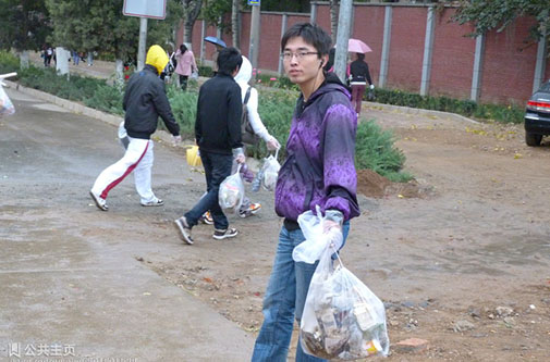 2014年10月,在我班党支部书记陈阳的带领下,班里党员团员同志放下繁重的学习任务,来到了学校北边的军都山进行捡垃圾活动。湿漉漉的路面没有让党员同志退缩,一片,两片......一包,两包……就这样大家在充满干劲的气氛中把一大片区域的垃圾捡的干干净净。没有怨言,没有退缩,我班的党员同志对志愿服务的热情着实让人感动。党员在服务中,认识到自己是班里的表率,怕苦怕累注定不能成就大事。通过这次捡垃圾活动,使得我们的党员同志深刻的认识到我们自己的行为影响着身边的人.我们是21世纪的主人,环保意识是现代人的重要标志.为了我们共同的家园,我们每一个人都应该也必须有勇气站起来对大自然做出承诺,承诺用我们的双手使地球母亲恢复青春容颜。但承诺自然并不仅仅是做出承诺,更应是以行动来实现我们的承诺.多弯弯腰捡捡果皮纸屑,多走几步,不要穿越绿化带,践踏绿地.同学们,"勿以善小而不为,勿以恶小而为之",让我们从我做起,从小做起,从身边做起。