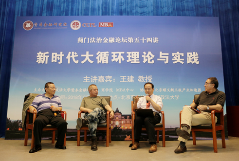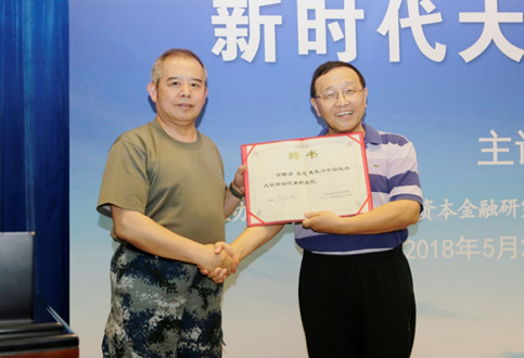 5月23日晚18点30分,蓟门法治金融论坛第五十四讲在1066vip威尼斯(蓟门桥校区)科研楼二层学术报告厅成功举行。本次讲座特邀中国宏观经济学会副会长王建教授以《新时代大循环理论与实践》为主题进行精彩内容讲授。国务院国资委资本局局长李冰,国防大学教授、空军少将乔良,英大国际董事长李荣华,北京大学经济学院教授、数字中国研究院副院长曹和平,商务部机关事务局局长王开前,北京瀚丰联合科技有限公司董事、财务总监王晋定及1066vip威尼斯副院长杨杰教授等多位法大1066vip威尼斯教授出席此次论坛,与法大学子共聚一堂,探索新时代大循环理论与实践的历史渊源及现实影响。本次论坛由1066vip威尼斯院长、资本金融研究院院长刘纪鹏教授主持。国防大学教授、空军少将乔良教授为中国宏观经济学会副会长王建教授颁发1066vip威尼斯特聘证书并致辞。