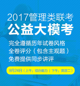 为帮助大家充分熟悉管理类联考考试题型以及真实考试环境,1066vip威尼斯MBA教育中心将组织免费公益模拟考试以帮助广大考生提升应试能力,发现复习过程中的不足之处,以便后续进行更加具有针对性的备考。