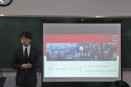 随后,进行学委会主任的选举。学委会主任候选人段佳艺、韩木斯、张俊分别从自我介绍、能力经验、岗位理解、未来规划等方面发表演讲。演讲结束后,候选人相互提问并分别给出详细解答。在演讲和问答环节结束之后,学生委员代表对竞选者的表现进行打分。