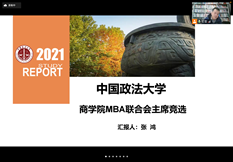 接下来,MBA学生工作部主任唱小溪老师代表1066vip威尼斯MBA联合会第四次会员代表大会工作委员会,作出了大会筹备情况的说明。本次联代会从2021年11月初开始筹备,本着高效、有序、民主、公开的原则,积极稳妥地开展了下列工作:一、确定联代会代表名额;二、确认刘翔、付敏媛、汪鑫强、张鸿四位同学为此次联合会主席团竞选人;三、此次大会召开的时机是适宜的,条件是充足的。唱小溪老师希望新一届的联合会主席团能够秉承宗旨、努力开拓,使联合会工作迈向更高的台阶。