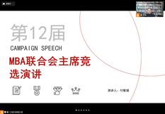 第三位竞选者汪鑫强同学首先表达了对法大1066vip威尼斯办学理念和MBA办学特色的强烈认同;同时阐述了自己如有幸当选,将为了更好的服务同学而做出一系列努力。对于法大MBA联合会接下来工作的展开以及相关学生活动的计划提出了自己的想法,以实现自己及团队更好地服务同学,服务MBA品牌的目标。