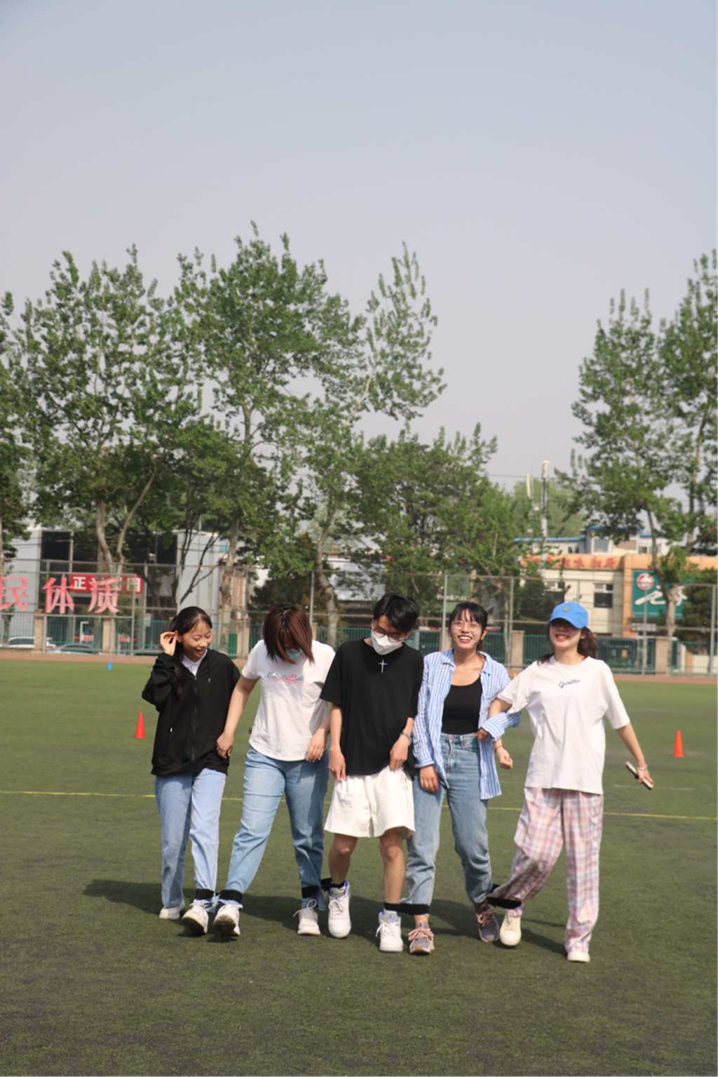 首先,部门之间进行了绑腿跑比赛。该项比赛共有四支队伍参与,比赛要求五个人将腿绑在一起挑战50米距离,用时最少的队伍获胜。各组同学相互配合,你追我赶,竞争激烈,场上热火朝天,场下观众同样激情四溢,加油呐喊声接连不断,最终第二组同学以1分7秒的成绩夺魁。